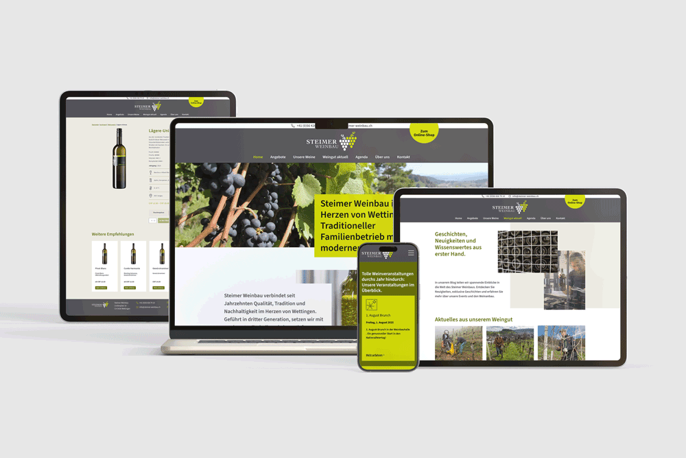 Neu-Gestaltung der gesamten Website mit Onlineshop für Steimer Weinbau